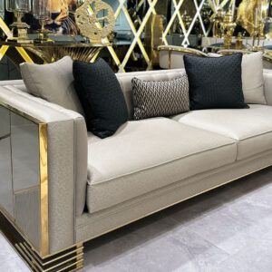 Berlin Gold Koltuk Takımı, altın detayları ile lüks bir hava yaratırken, modern tasarımı sayesinde zamansız bir estetik sunar. Krem, gri, antrasit gibi modern tonlarla birleşen altın vurgular, koltuk takımına sofistike bir görünüm kazandırır. Minimalist çizgiler ve altın renkli metal ayaklar, yaşam alanınıza hem zarif hem de gösterişli bir hava katar. Berlin Gold Koltuk Takımı, ev dekorasyonunuzda lüksü ve şıklığı bir arada isteyenler için ideal bir seçimdir.