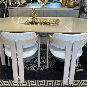Bianco Yemek Odası Takımı, uzun ömürlü bir kullanım sağlamak amacıyla dayanıklı malzemelerle üretilmiştir. Masanın sağlam ahşap iskeleti ve çizilmeye karşı dayanıklı parlak yüzeyi, şıklığı ve dayanıklılığı bir araya getirir. Sandalyelerin ergonomik yapısı, oturum konforunu en üst düzeye çıkarmak için tasarlanmış olup, yumuşak dokulu kaplamalarla zarif bir görünüm sunar. Kaliteli malzemelerle üretilen bu takım, hem görsel olarak etkileyici hem de işlevsel bir çözümdür.