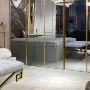 Gold Bera Yatak Odası Takımı, göz alıcı altın detaylarıyla lüksü ve zarafeti bir arada sunar. Altın rengiyle zenginleştirilmiş ince çizgiler, takımın genelinde dikkat çekici bir zarafet oluştururken, kullanılan renk paleti yatak odanıza ferahlık ve ışıltı katar. Soft ve nötr tonlar ile altın renginin birleşimi, odanıza modern ve sıcak bir hava kazandırır. Bu şık detaylar ve zarif tasarım, Gold Bera Yatak Odası Takımı’nı, yatak odasında lüks ve göz alıcı bir atmosfer yaratmak isteyenler için mükemmel bir seçenek haline getirir.
